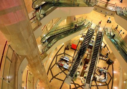 101購(gòu)物(wù)中心的(de)自(zΩ₩ì)動扶梯錯(cuò)落有(yǒu)緻