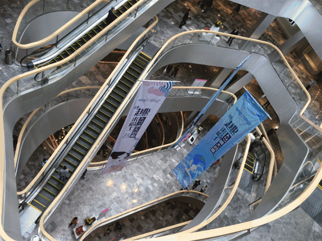 商場(chǎng)內(nèi),連自(zì)動扶梯也(yě)有₩®(yǒu)張愛(ài)玲語錄,帶有(yǒu≥₽β∞)著(zhe)濃濃的(de)文(wén)藝情懷。